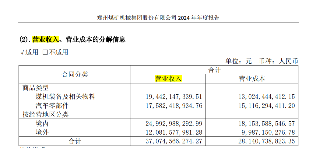公司煤矿机械板块主要经济指标连续十余年居行业龙头,国内市场占有率保持在30%以上。煤矿综采机械产品遍布全国各大煤业集团,先后出口到美国、澳大利亚、土耳其、印度、越南等国家。郑煤机拥有国家级企业技术中心、博士后科研工作站等科研机构,先后承担了国家多项煤矿综采装备重点项目的研制开发,引领了中国煤矿综采装备的发展方向。