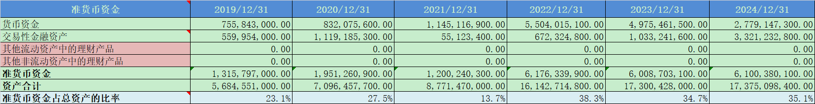 2. 准货币资金占比35.1%,账面现金非常充裕;