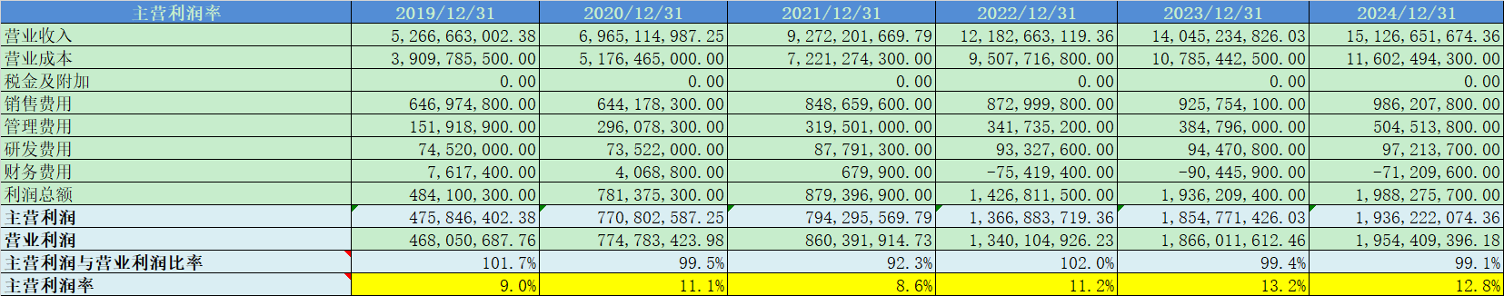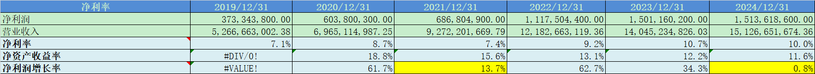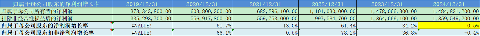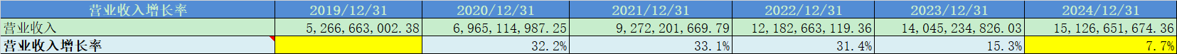 营业收入增长率长期比较稳定,在2023-2024年营收增速明显下降;