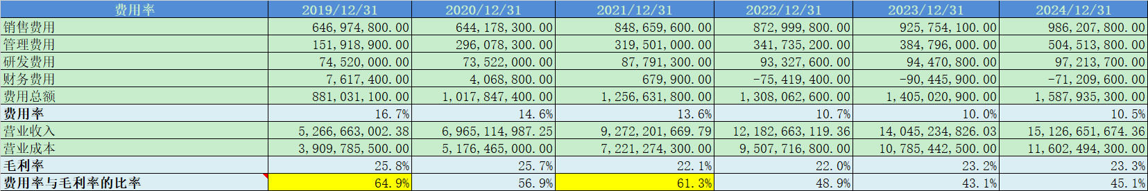 7. 毛利率23.3%,毛利率水平一般;净利率10%,近几年稳步上升;费用率45%,成本管控优秀;