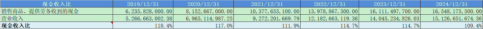 净利润现金比率平均值116.7%,净利润现金含量非常高;