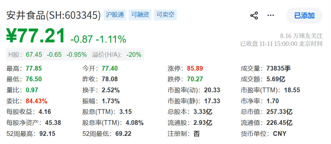 2017年2月22日,公司在上海证券交易所主板挂牌上市,股票简称“安井食品”,股票代码“603345”。继2022年成为国内速冻食品行业首家年营收超过百亿、利润过十亿的集团公司之后,2024年度,公司实现营业收入151.27亿元,归属于上市公司股东的净利润14.85亿元,营收与净利润均实现稳健增长,继续巩固了速冻食品行业的龙头地位,展现了强大的发展韧性,稳居国内速冻食品行业规模第一、利润第一和市值第一。