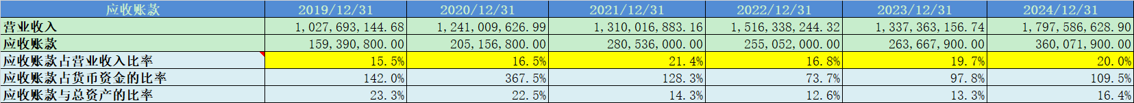 3. 应收账款占比20%,占比还是比较高的;