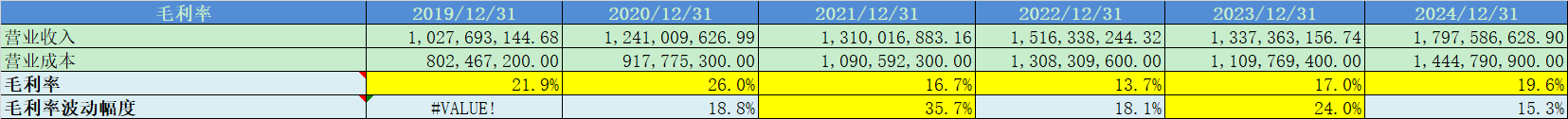 营收增速波动较大,平均值12.9%,属于中速增长;