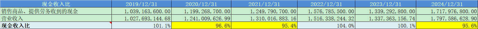 净利润现金比率除2021年之外,平均都在100%以上,净利润现金含量很高。