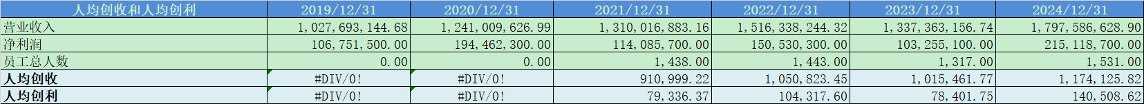 人均创收和创利都比较一般。