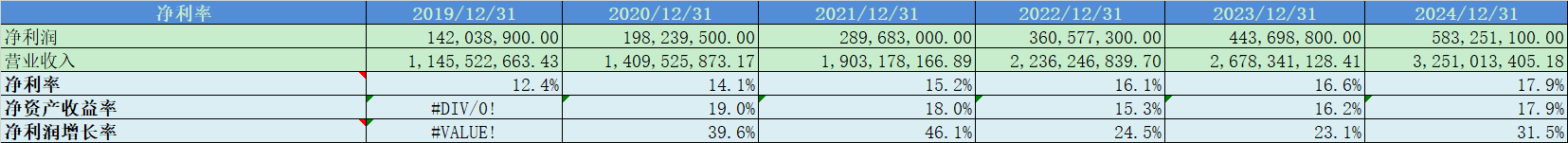净利率这几年稳步上升,2024年为18%;