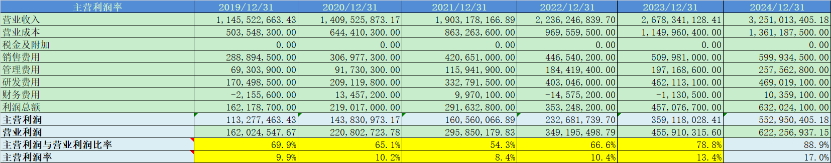 主营利润率17%,这几年上升趋势比较明显;