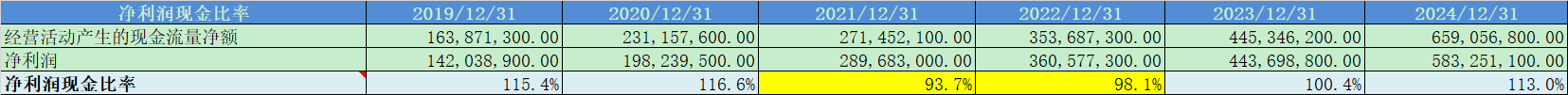 净利润现金比率104%,现金含量优秀;