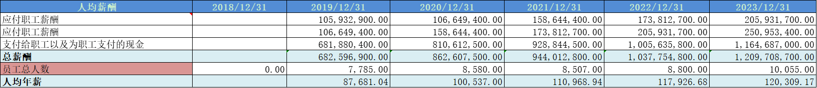 这里人均创利仅仅6万左右,是人均薪酬的一半,有点不可思议,至于是什么原因,我还没找到。