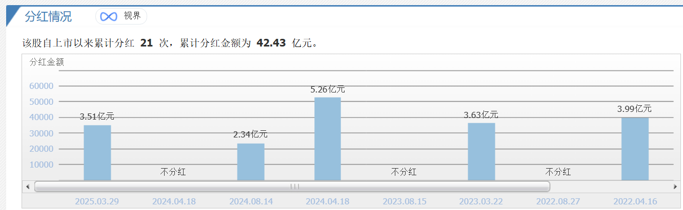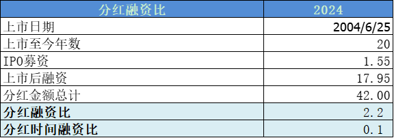 2004年至今分红融资比2.2,这个比率处于中等水平。