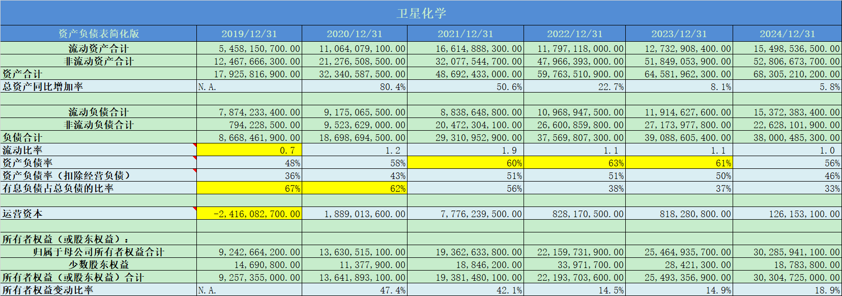 整体上看,卫星化学的资产质量一般,负债率较高,流动比率正常,整体增长良好;