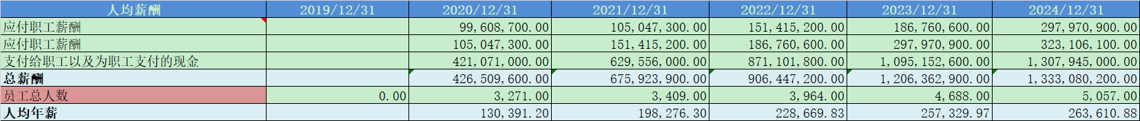 人均薪酬26万,薪资水平非常好;