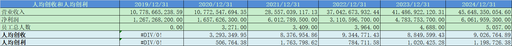 人均创收和人均创利表现优秀;