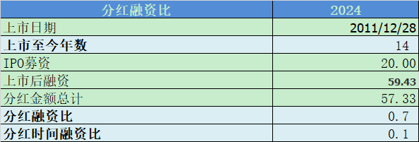 分红融资比0.7,时间比0.1,不及格;