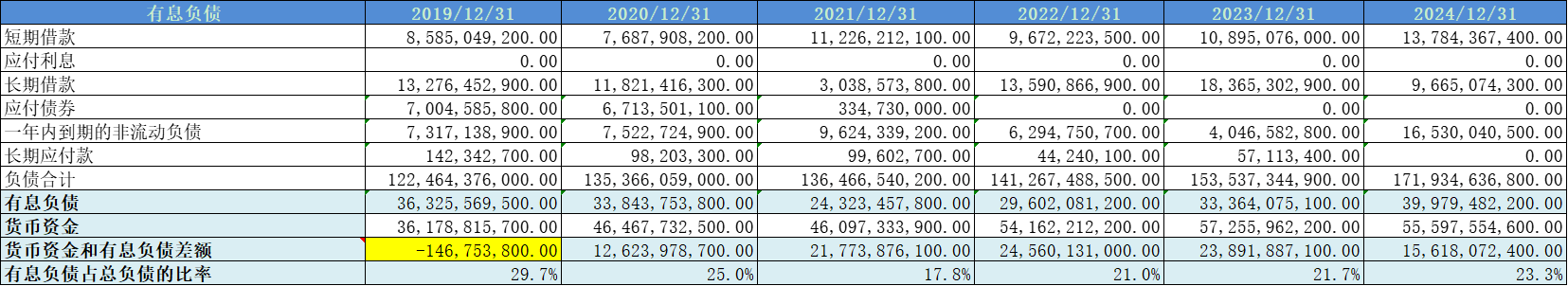 有息负债占比不大。