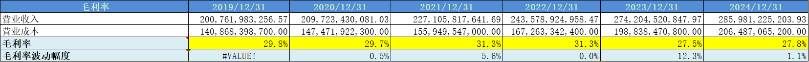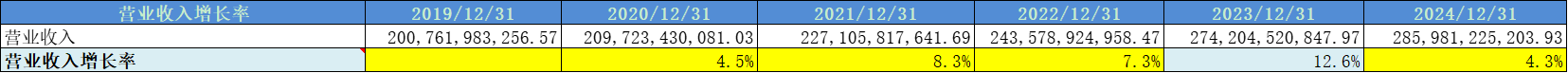 营收增速平均值为7%,增速不高。