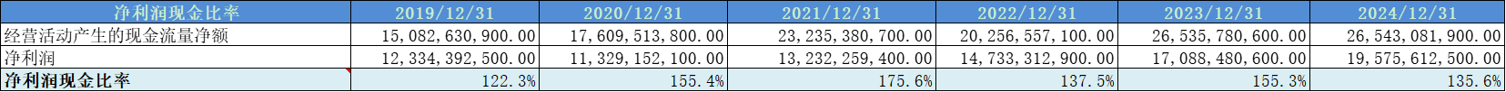 平均净利润现金比率高达146%,净利润现金含量极高。