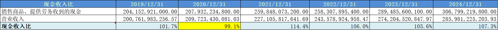 现金收入比基本都在100%以上,收入质量很高。