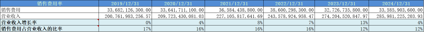 销售费用率近几年有所优化,2024年为12%;