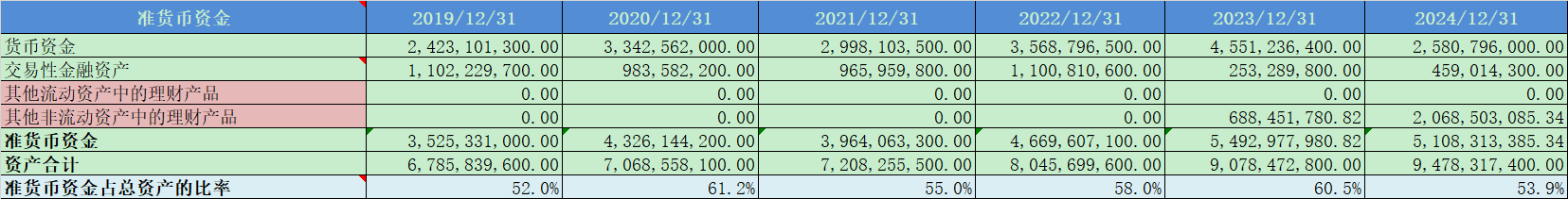 准货币资金占比平均值57%,账面现金流非常充裕;