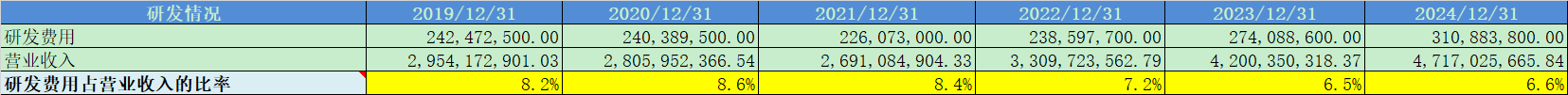 销售渠道拓展:为深化拉美、欧洲市场布局,公司加大渠道建设投入,销售费用率从 2023 年的 7.5% 升至 2024 年的 8.3%。