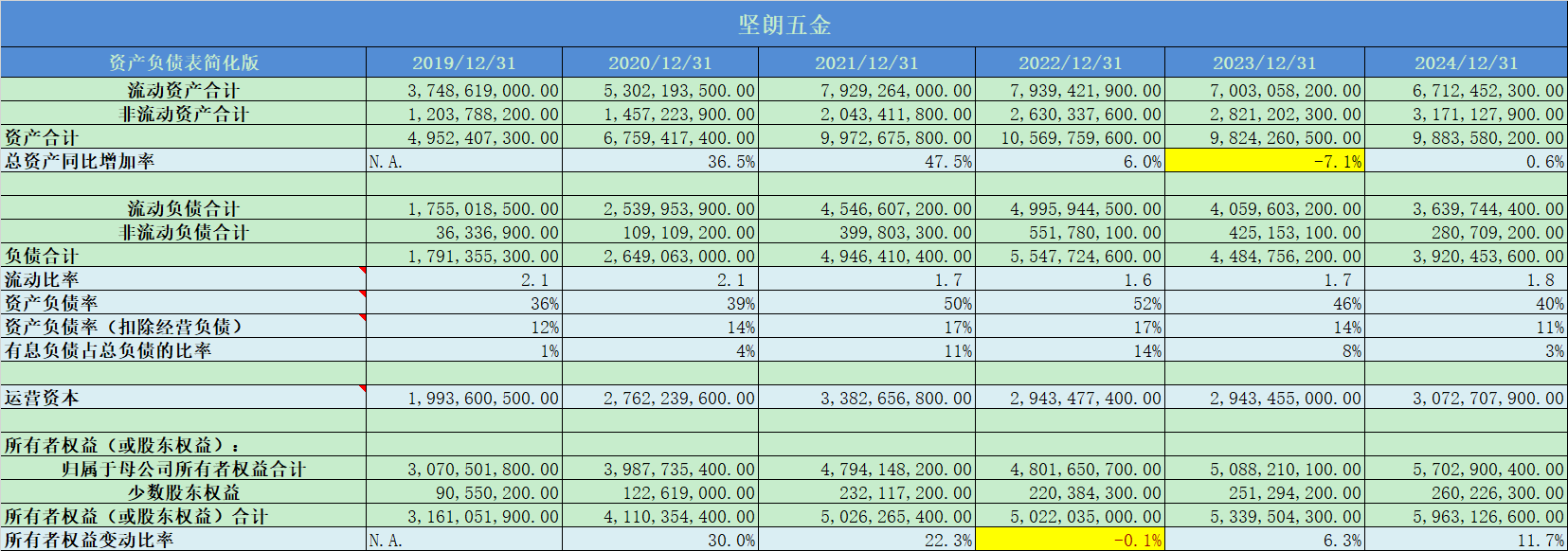 整体上看,坚朗五金的资产质量很高,负债率降低,且有息负债极低,经营负债占比较大,企业竞争力较强,流动比率健康;