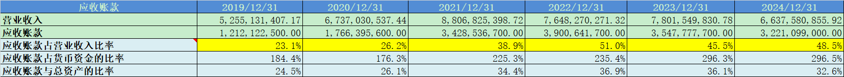 应收账款48%,相比前些年出现大幅上升,是企业经营持续恶化的表现;