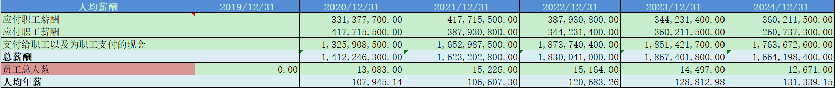 人均薪酬13万,薪资水平一般;