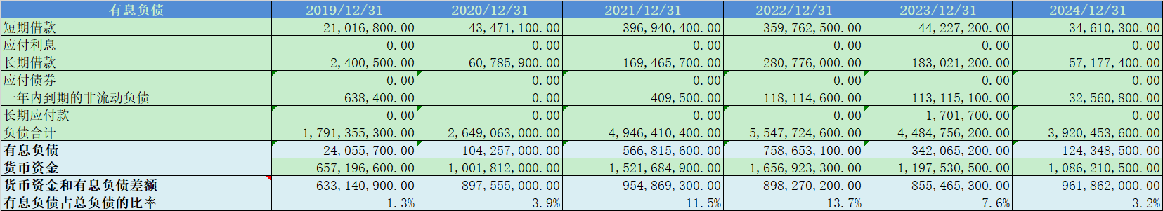 有息负债占比3%,占比极低;