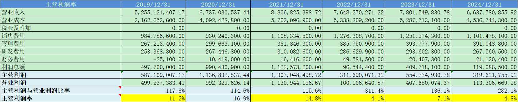 主营利润率平均值9.5%,主业盈利能力一般;