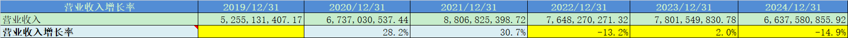 营收增速波动较大,2022-2024年出现明显下降,和东方雨虹表现一致;
