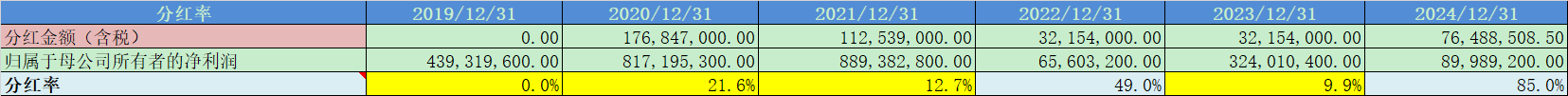 分红率不稳定,年度间波动也比较大;