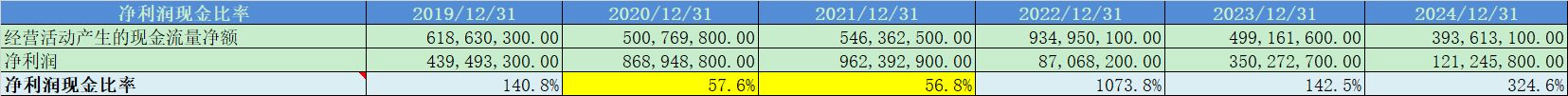 净利润现金比率除2020-2021年之外,表现都比较健康;