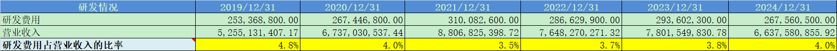 研发费用率4%,占比不高;