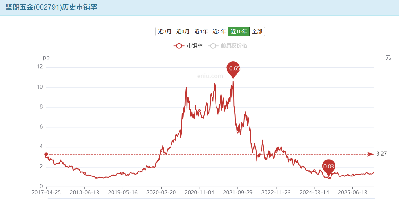 从历史估值上看,当前坚朗五金处于底部,需要关注业绩拐点;
