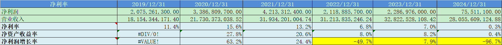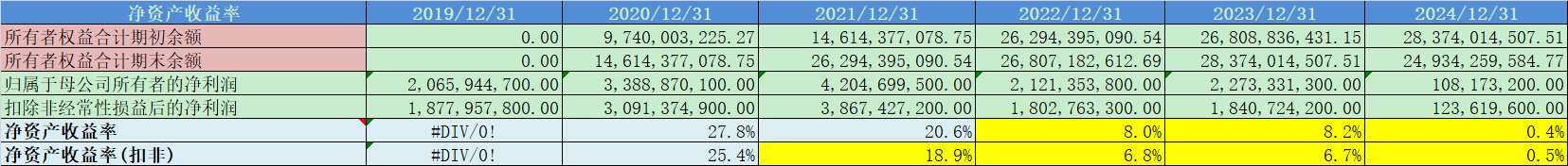 净资产收益率平均值11.6%,年度间波动巨大,2024年仅仅0.5%,下滑明显;