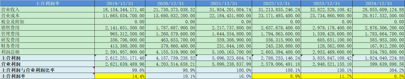 主营利润率6.5%,主业盈利能力相比前些年出现明显下降;