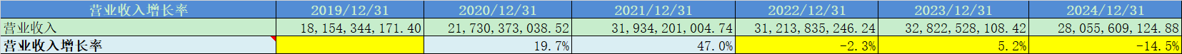 营业收入增长率平均值11%,2022-2024年显著下降;