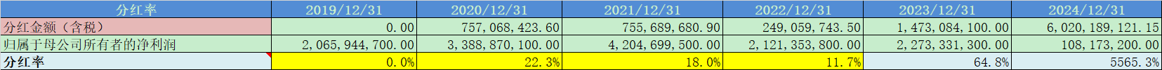 分红政策的阶段调整: 2019-2021 年:扩张优先,分红为辅; 2022 年:业绩承压,优先保障现金流安全; 2023-2024 年:战略转向 “重视股东回报”,即使在净利润低迷的 2024 年,也动用留存收益实施大额分红,以稳定市场信心。