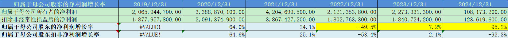 扣非净利润增速波动巨大,2022-2024年下降明显;