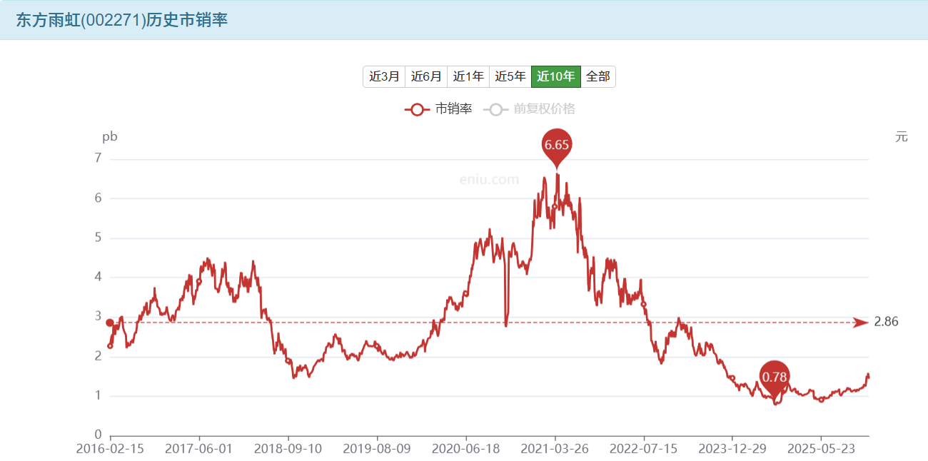 东方雨虹的净利润波动巨大,市盈率已经失真,需要参考市净率和市销率;