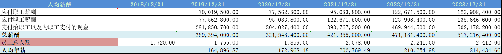 人均薪酬19万左右,在制造业公司中算是比较高的。