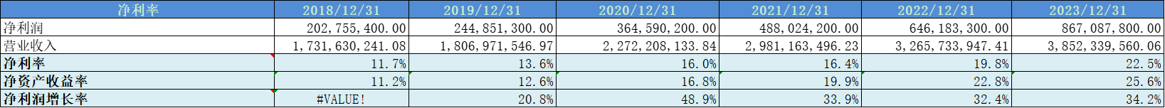 净利率近几年改善明显,2023年为22%,这个很不错。