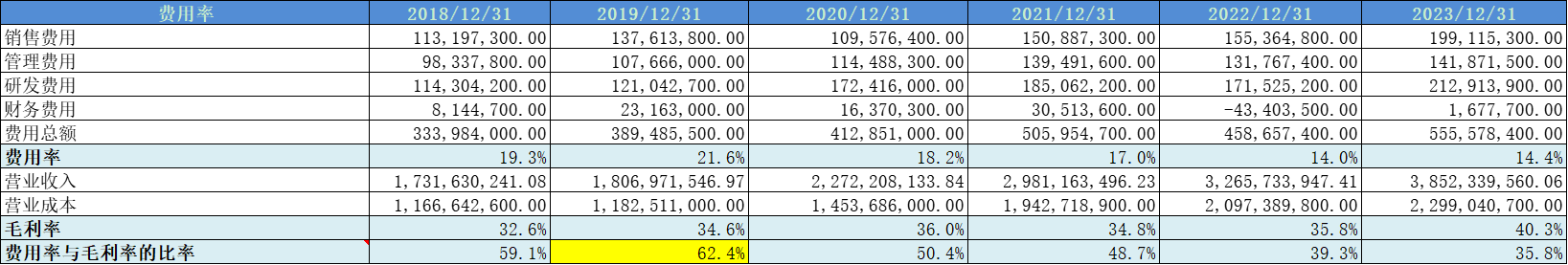 费用率近几年下降的非常明显,2023年为35%,公司的成本管控进步很大。