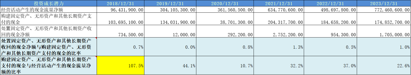 2019年至今,购建固定资产平均比率为30%,发展潜力比较稳健。