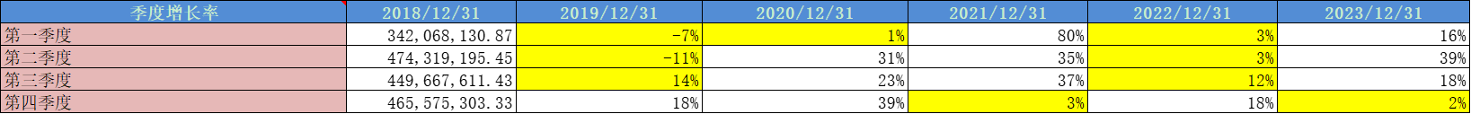 公司的季度增长率波动较大,其中第四季度为淡季。