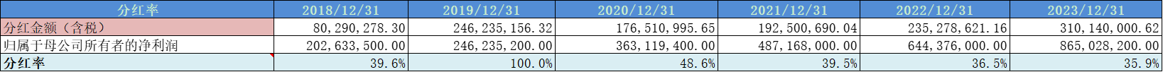 分红率在40%左右,股东回报意识很好。