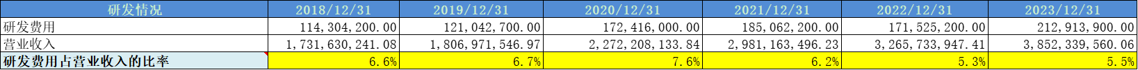 研发费用占比6%左右。