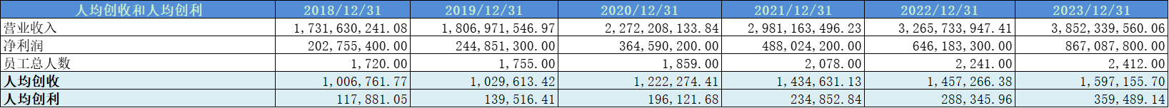 人均创利近几年增速非常快;